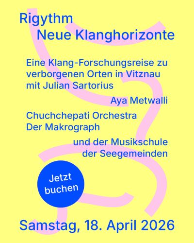Wir heissen Sie herzlich willkommen zur ersten Rigythm Klang-Forschungsreise in Vitznau – ein einmaliges, neugieriges und experimentelles Erlebnis. Begeben Sie sich mit uns auf eine Entdeckungsreise zu neuen Tönen und überraschenden Orten.